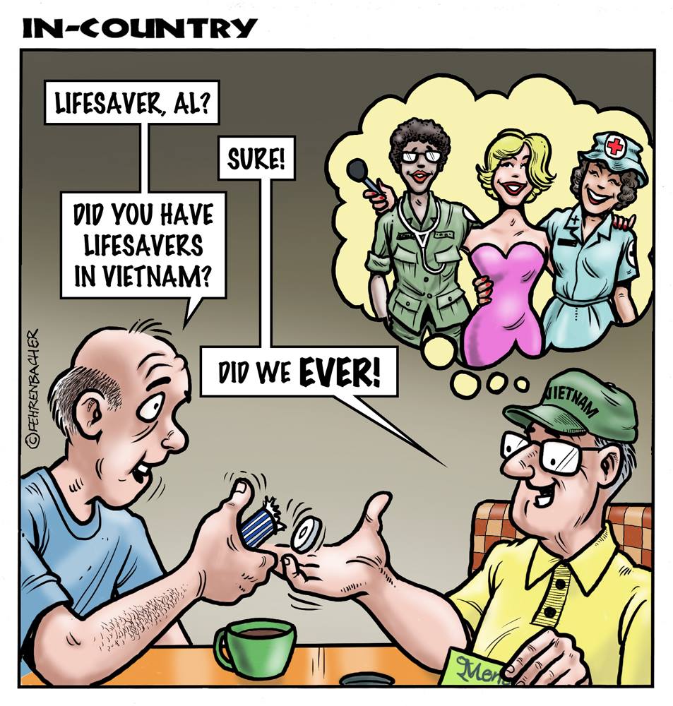 Phil enlisted in the Army in 1965 where you served for years in Vietnam. He became a graphic designer and has worked for the state of Oregon for 26 years. He retired in 2003 and started the Cartoon "In-Country". The cartoons reflect his experiences during his tour of duty in South Vietnam.