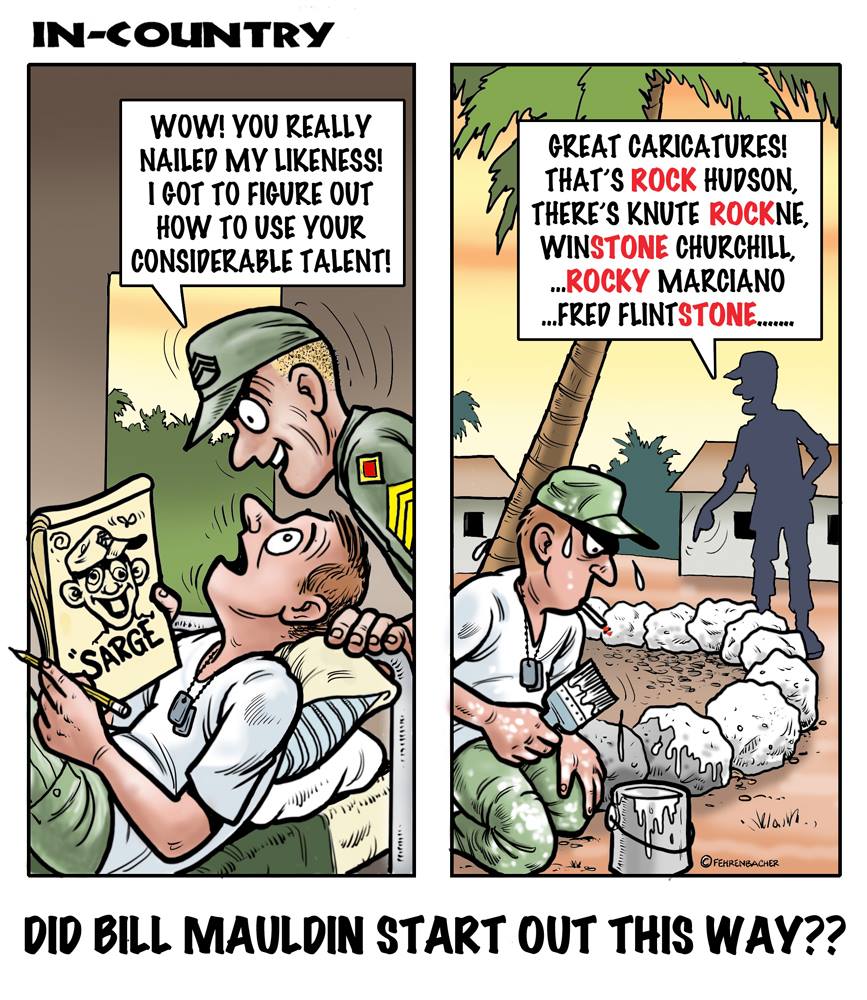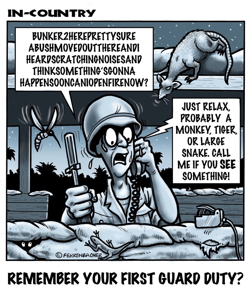Phil enlisted in the Army in 1965 where you served for years in Vietnam. He became a graphic designer and has worked for the state of Oregon for 26 years. He retired in 2003 and started the Cartoon "In-Country". The cartoons reflect his experiences during his tour of duty in South Vietnam.