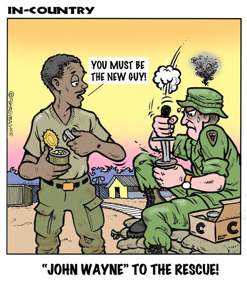 Phil enlisted in the Army in 1965 where you served for years in Vietnam. He became a graphic designer and has worked for the state of Oregon for 26 years. He retired in 2003 and started the Cartoon "In-Country". The cartoons reflect his experiences during his tour of duty in South Vietnam.